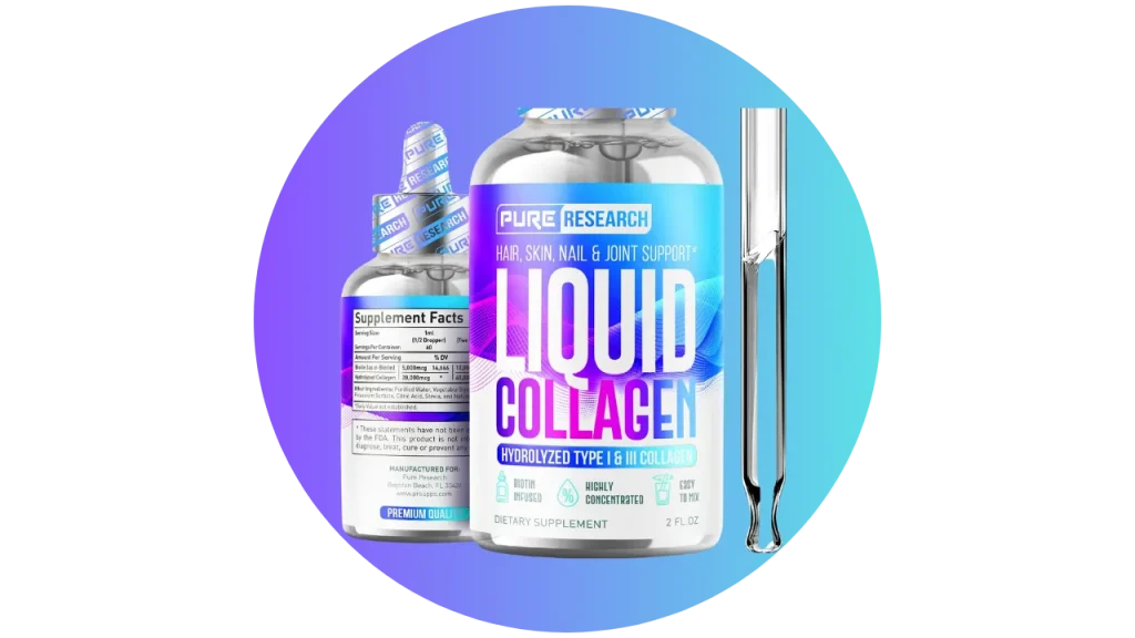 Pure Research Liquid Collagen is formulated with biotin-vitamin B7 (a member of the vitamin B-complex family). Pure Research is dedicated to providing high-quality liquid collagen supplements crafted with the purest ingredients for long-lasting support in various health aspects. Their website says, “We take pride in our brand and your results. In fact, we strive to always exceed your expectations and stand behind our products by offering a full, 100% money-back guarantee.”