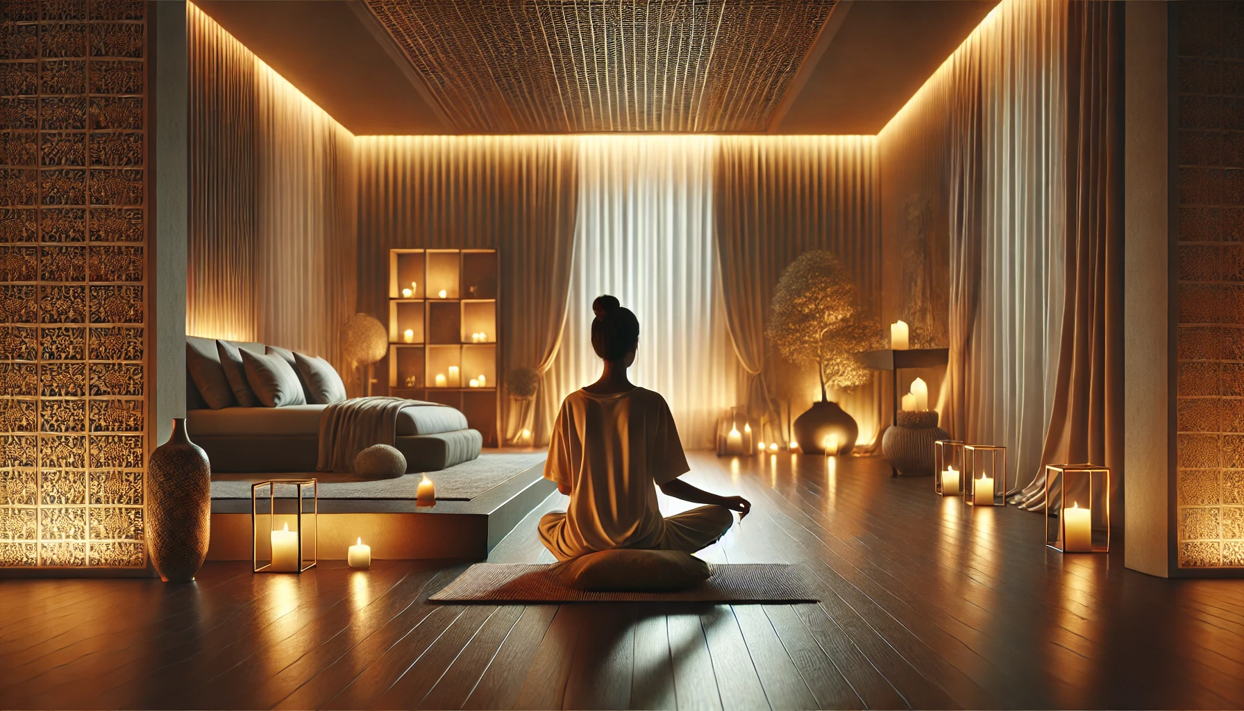 Visualize a serene place—perhaps a quiet beach, a peaceful forest, or a meadow filled with soft golden light. See yourself there, completely at ease, surrounded by nature’s gentle embrace. With every breath, feel yourself becoming lighter, more at peace.