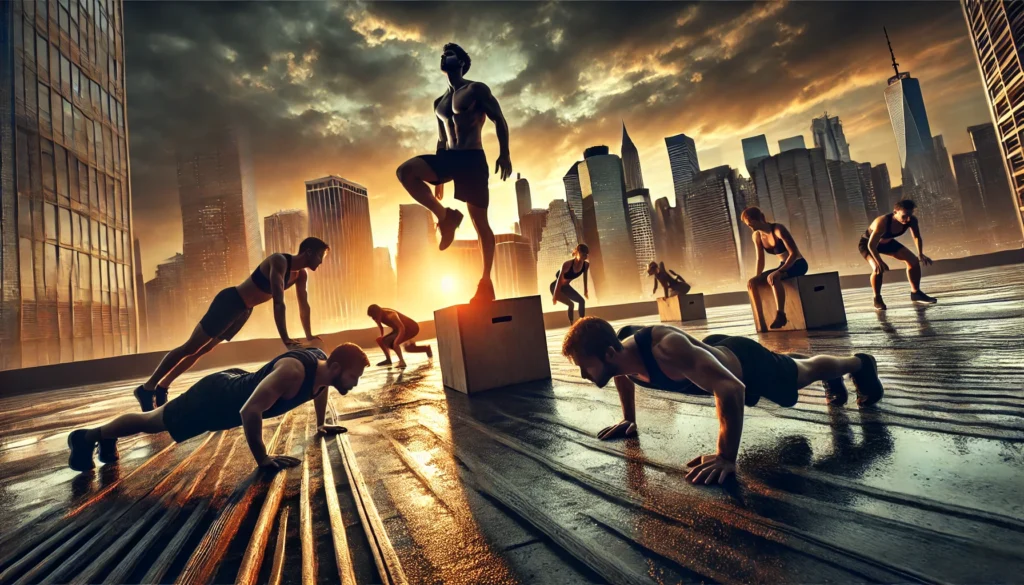 functional fitness, endurance training, bodyweight HIIT, strength progression, fitness transformation, movement efficiency, mobility drills, calisthenics, high-intensity workouts, explosive power, injury prevention, core activation, training adaptation, progressive overload, at-home workouts, full-body exercises, metabolic conditioning, workout tracking, flexibility training, fitness consistency.