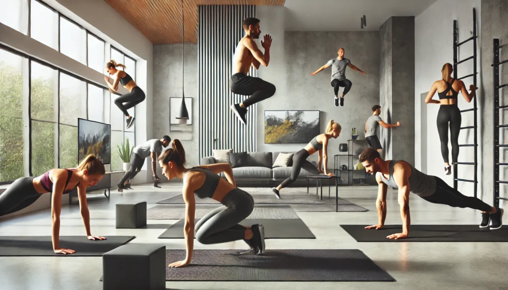 calisthenics training, functional fitness, home workouts, strength without weights, bodyweight hypertrophy, movement efficiency, endurance training, mobility drills, workout progression, explosive power, HIIT, injury prevention, flexibility routines, strength endurance, core activation, unilateral training, agility exercises, full-body conditioning, workout adaptations, fitness longevity.